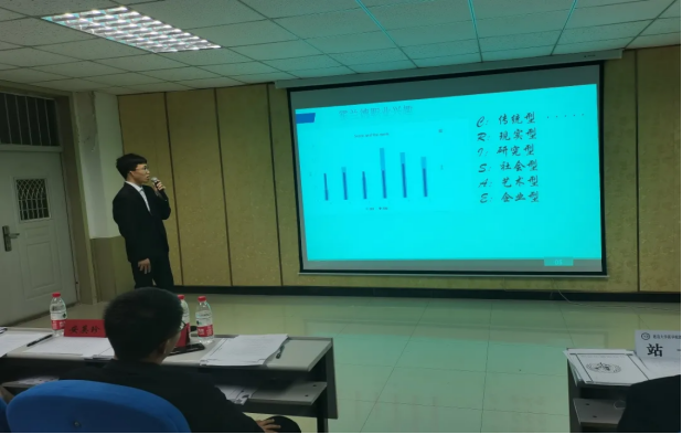大赛现场上,相较于初赛上的青涩紧张,决赛上的参赛选手们更显从容,表达更为全面,在赛上带来了一个个更加成熟的作品。从同学们展示的内容上看,参赛选手们对本次比赛做了认真的准备——场上从容不迫地剖析自己、介绍自己的职业规划,其身上散发的热情和自信感染了在座的每一个人。