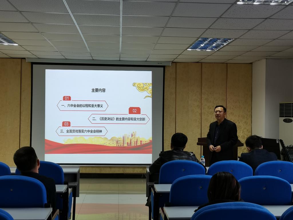 赵刚老师通过全面详细的讲解,带领大家深入学习了党的十九届六中全会的议程和重大意义,《历史决议》的主要内容和重大创新,以及全面贯彻落实六中全会精神的重要意义和深刻内涵,全面阐述了党的十九届六中全会是在我们党成立一百周年的重要历史时刻,在党和人民胜利实现第一个百年奋斗目标、全面建成小康社会,向着全面建成社会主义现代化强国的第二个百年奋斗目标迈进的重大历史关头,召开的一次十分重要的会议。全会审议通过的《中共中央关于党的百年奋斗重大成就和历史经验的决议》是一篇马克思主义纲领性文献,对全党更加坚定、更加自觉地践行初心使命,在新时代更好坚持和发展中国特色社会主义,具有重大现实意义和深远历史意义。