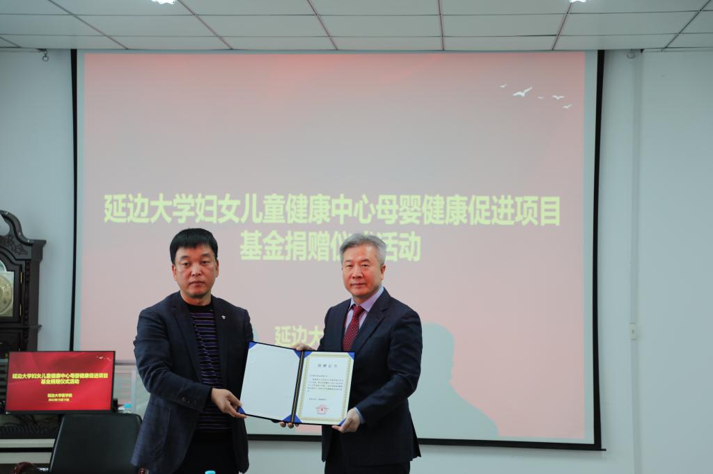 举办延边大学妇女儿童健康中心(以下简称健康中心)母婴健康促进项目基金捐赠仪式。北京韩美药业有限公司总经理任海龙出席仪式。澳门银河
