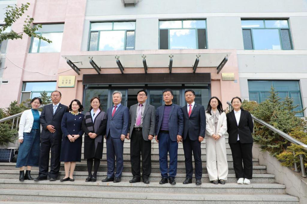 最后,教育基金会金钟范会长为任海龙总经理颁发捐赠证书,与会人员在医学楼门口合影留念。