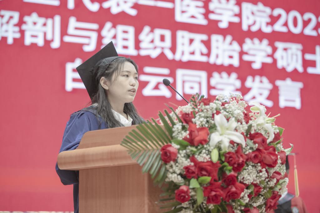 2023届人体解剖与组织胚胎学硕士研究生白巧云同学作为学生代表发言。她深情回顾了在延大澳门银河