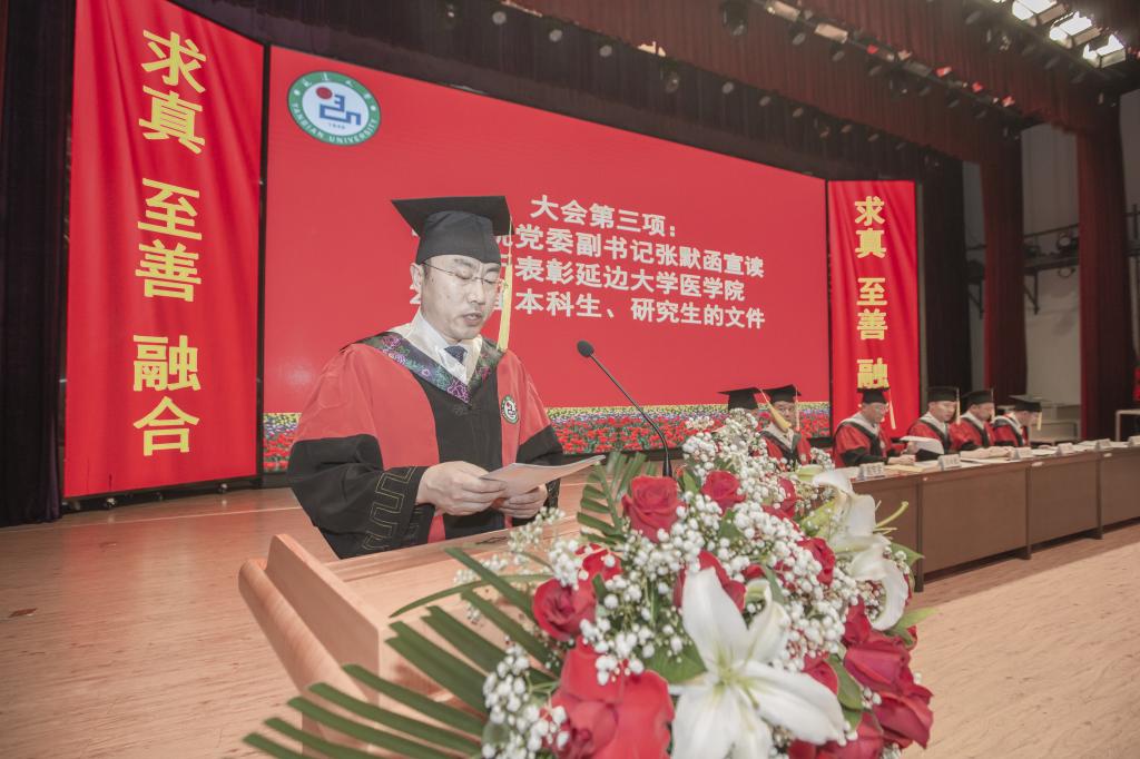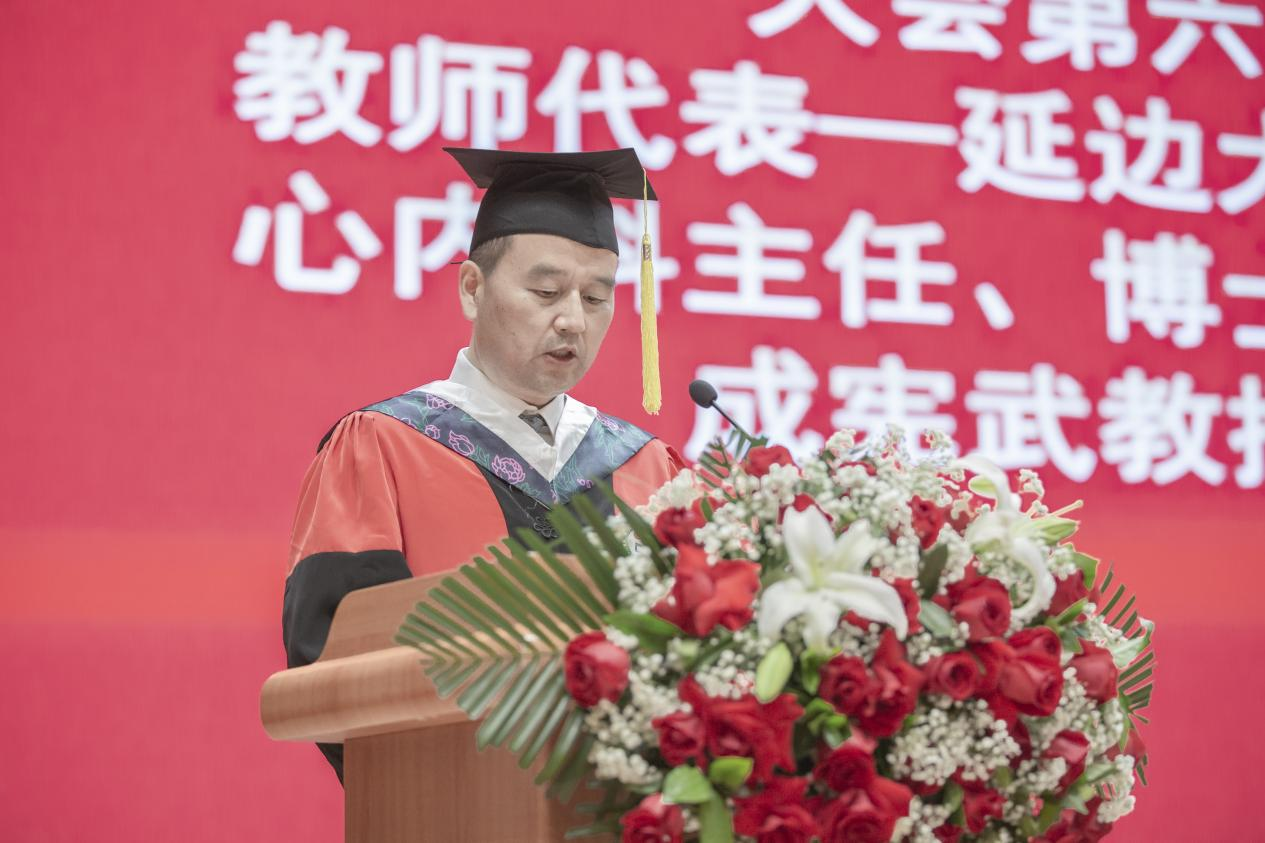 刻苦学习的难忘时光,分享了一路奋进成长成才的经历。延边大学附属医院心内科主任、博士研究生导师成宪武教授作为教师代表发言。他希望毕业生们树立远大理想、热爱伟大祖国、担当时代责任、勇于砥砺奋斗、练就过硬本领、锤炼品德修为,努力成为对社会有用的人、道德高尚的人,积极投身全面建设社会主义现代化国家的伟大事业中。