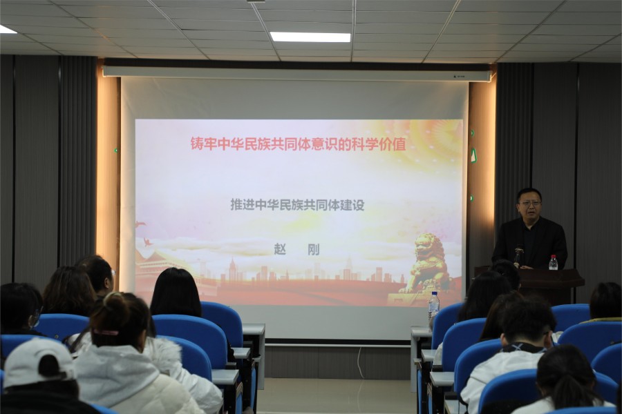 赵刚院长围绕中华民族共同体建设的时代背景、使命牵引、任务落归、内在遵循与逻辑主线、内在支撑与宏观基础以及新时代党推进中华民族共同体建设的新思路等六方面为全体师生做了一场深入浅出、生动形象的讲座。