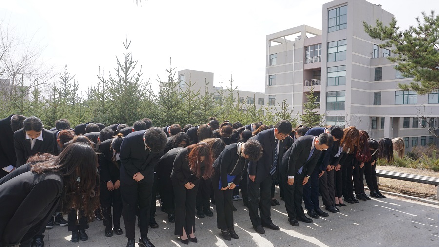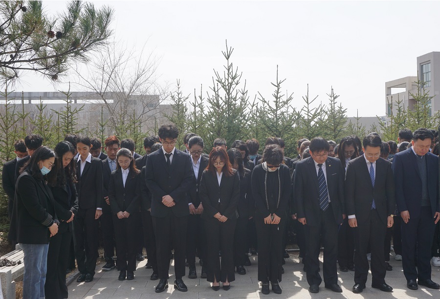 参与本次缅怀仪式的领导老师有我院院长兼临床医学专业主任金哲虎、党委副书记南宗焕、办公室主任金丹、研究生与学科建设办公室主任周宪春、学生工作办公室主任兼2020级临床医学专业辅导员张雪慧、学生党总支书记兼麻醉学专业辅导员孙良鹏、就业辅导站站长兼2018级临床医学专业辅导员尹伟明、学院办公室秘书杨今实。缅怀仪式由我院团委书记兼2017、2019级临床医学专业辅导员安英珍主持。