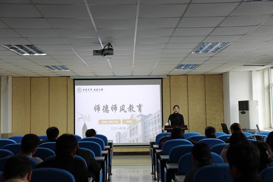 陈部长通过对《新时代高校教师十项准则》的讲解,以及对近几年某些高校出现的败坏师德师风的案例分析,让与会教师深深的感受到作为人民教师在严守道德底线的同时应不断加强自身修养,为人师表,做道德的楷模,引导教师们要做具有良好师德的教师,在实践与反思中提升师德素养。陈部长强调,学校将出台师德师风相关规定,并且把此项内容与职称评审挂钩,实行一票否决。