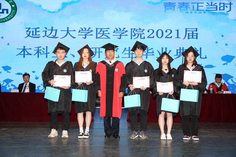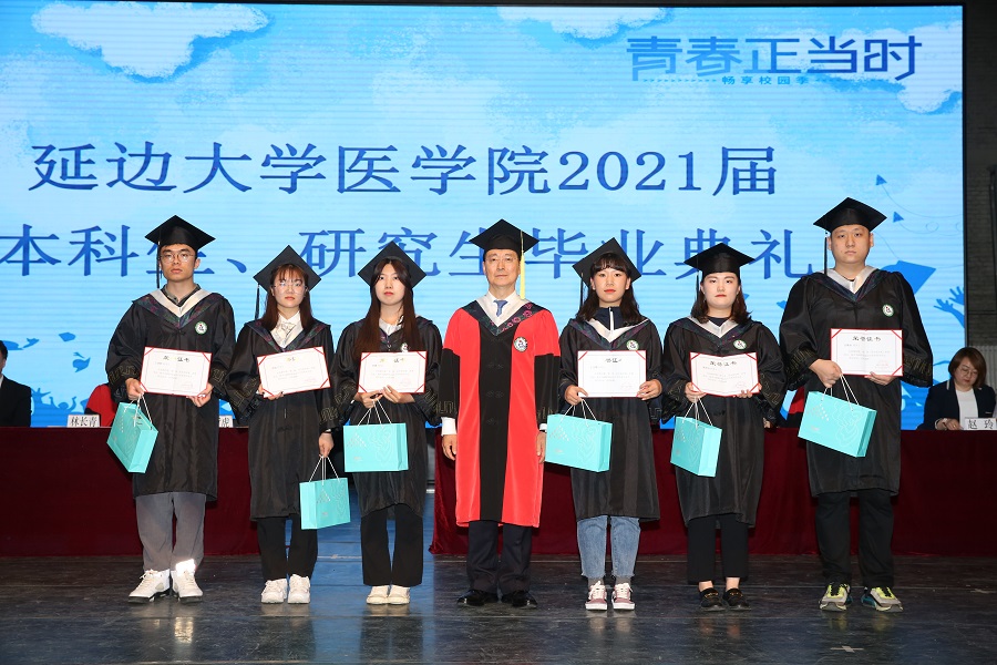院长金哲虎教授致毕业辞。在这个重要的日子里,金哲虎院长对所有取得优异成绩的学子表示了祝贺,并提出了四点希望。一,做一个有爱国精神的新青年,作为担当民族大任的时代新人,在芳华之年要用激情书写青春,每一位延医学子能够奉献仁爱之心,不辞辛苦,不拘得失,尊重生命,敬畏生命,竭尽全力给予病人健康的身体和心理,把敬业之心,爱国之情融入到波澜壮阔的民族事业当中。二,希望大家能够做脚踏实地的实干家,不积跬步,无以至千里;不积小流,无以成江海,希望大家在自己的事业中能够做好每一件事,认真地完成自己的工作。三是希望大家能够做终身学习的奋斗者,接受新思想,把握新趋势,储备新知识,介入新思维,知行合一,融合发展,突破本领,让青春在创新创造中闪光。四是希望大家能够做勇于追梦的追梦人,在内卷的困惑中仍能活出自我,追求成功,追求爱情。“青春是用来追梦的,有诗才有远方。”在这任重而道远的医学之路上,大家必须撸起袖子,迈开步子,在实践中成长,收获宝贵的人生经历,成就自我。