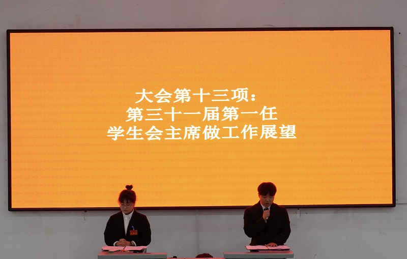 学生会将会团结进取、锐意创新,再创佳绩。本次大会有25位新一任委员会委员候选人进行竞选演讲,192位参会代表进行投票。通过选举产生了第三十一届第一任学生委员会和常务委员会。